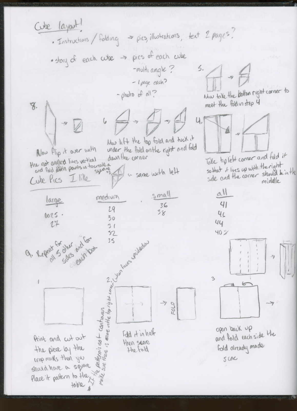 < This is the rough sketch and written instructions for how to construct the cube sides. These instructions are now in the cube spread.